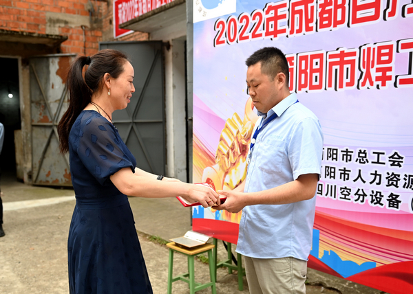颁奖仪式5月13日下午在公司焊培中心门前举行,(集团)公司工会主席谢波主持仪式并宣布竞赛成绩。简阳市总工会、简阳市人力资源和社会保障局、简城街道工会联合会领导相关领导出席颁奖仪式并为获奖选手颁奖。